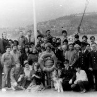 На фоне Айя-Софии. 23-й рейс НИС «Профессор Водяницкий», под руководством Петипа Т. С. (её последний рейс). май 1987 г.23-й рейс НИС "Профессор Водяницкий". Домой из Индийского океана. Босфор, на фоне Айя-Софии, май 1987 г. [ID: 977 ]