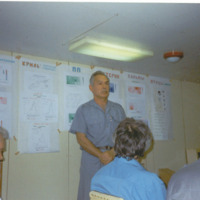 Самышев Эрнест Зайнуллинович, д. б. н., проф., руководитель отдела функционирования морских экосистем с 1991 г. по настоящее времяУ рукотворной лаборатории на НИС «Горизонт», 7-я Украинская арктическая экспедиция, апрель 2002 г. [ID: 1197 ]