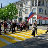 1 мая 2015 г., демонстрация в честь Дня труда, сотрудники ИнБЮМ на праздничном шествии по центру города (фотоальбом) [ID: 1368 ]