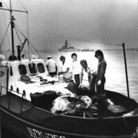 Прибрежная экспедиция. Отдел бентоса. Отход фелюги на сбор проб от причала на Приморском бульваре у здания института [ID: 862 ]
