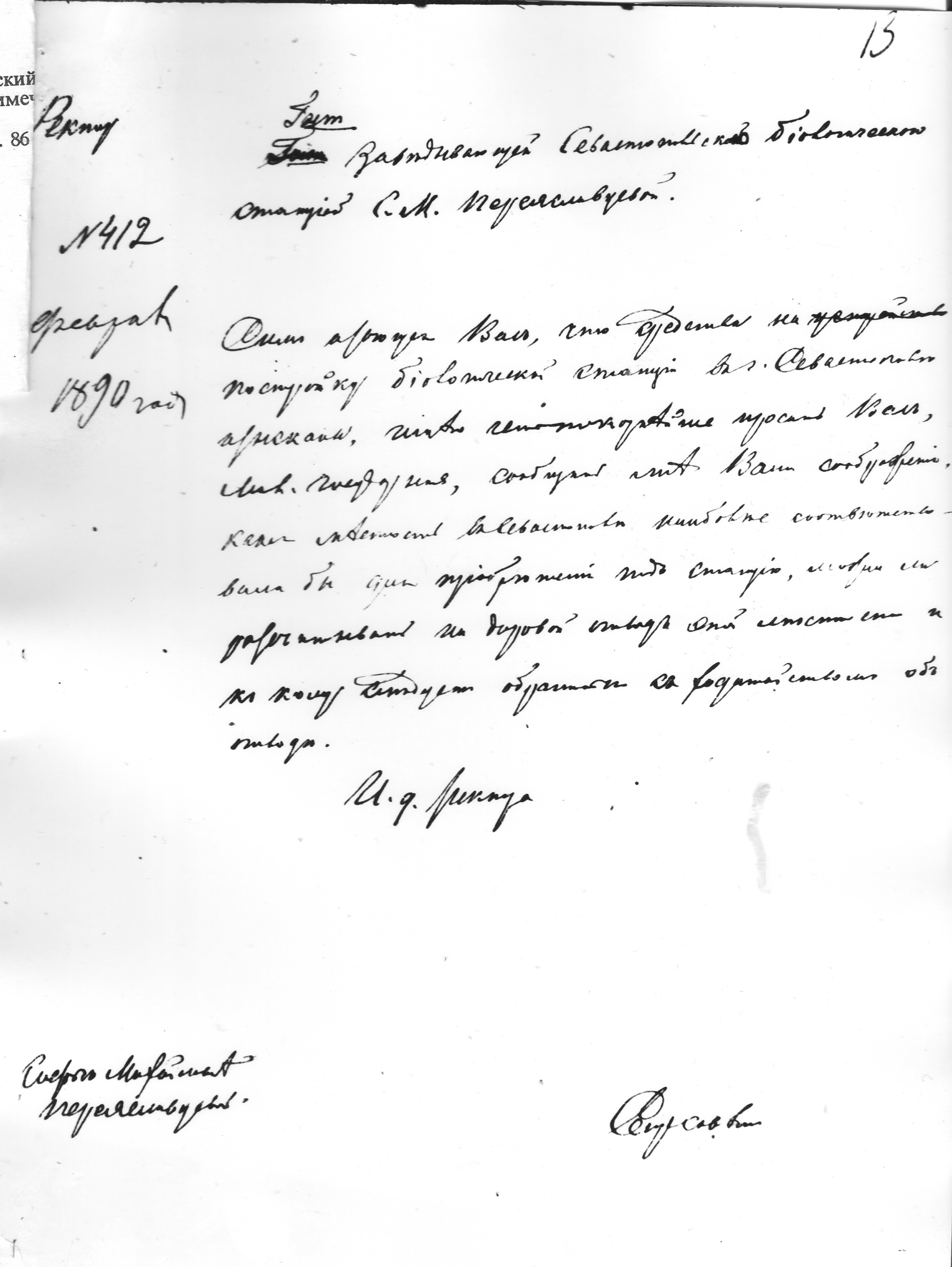 Запрос к С. М. Переяславцевой о месте для здания СБС от 16 февраля 1890 г. [ID: 1056]