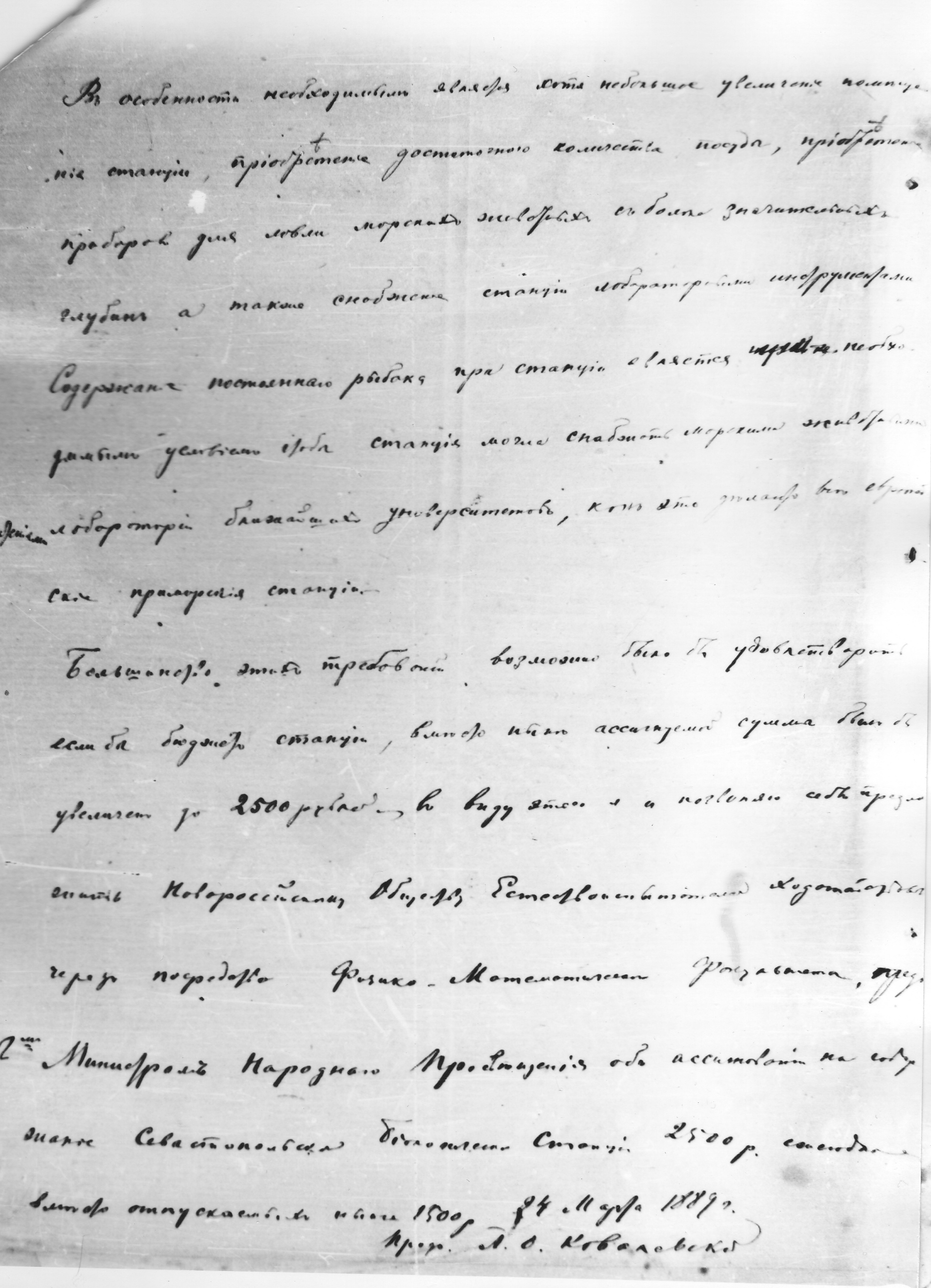 Письмо А. О. Ковалевского в Совет Новороссийского Общества Естествоиспытателей от 24 марта 1889 г.