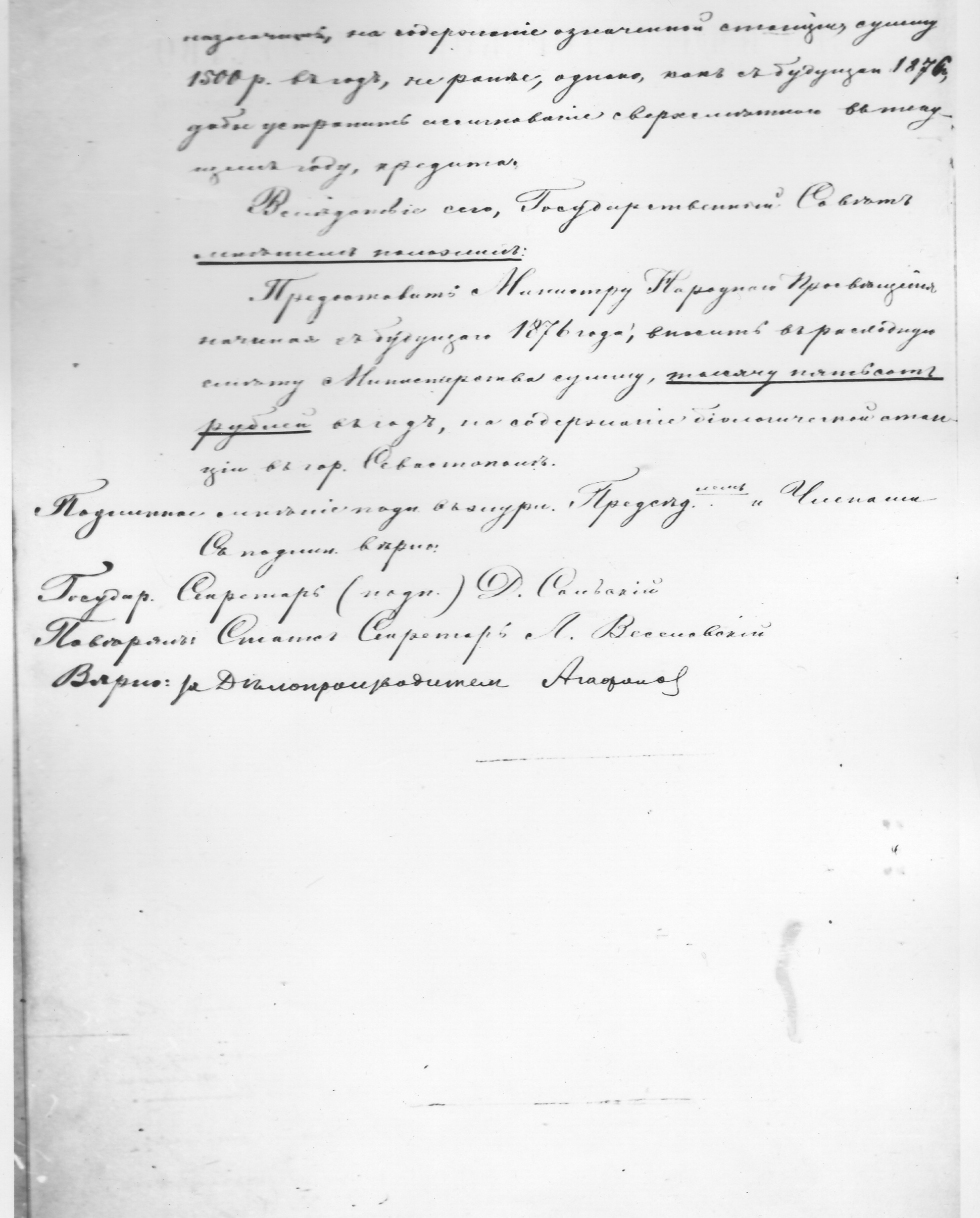 Окончание документа о финансировании СБС, 1875 г.