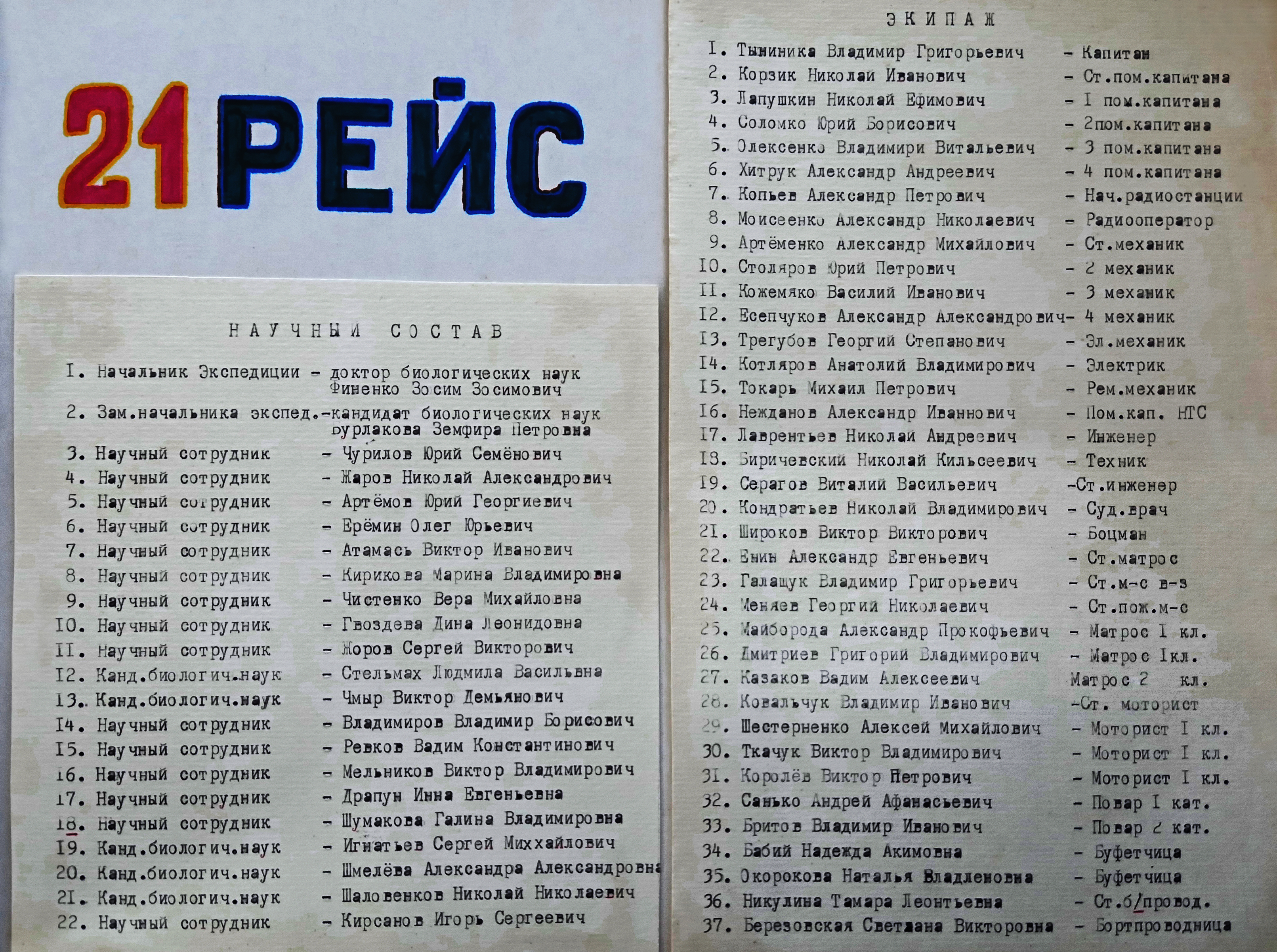 Рейс №21. Экипаж. Научный состав. [ID: 1088] IMG_20201116_110939_0.jpg IMG_20201116_110939_1.jpg IMG_20201116_110939_2.jpg Заглавие Рейс №21. Экипаж. Научный состав. Источник Альбом "История научно-исследовательского судна Профессор Водяницкий" Коллекция История научно-исследовательского судна "Профессор Водяницкий" Метки НИС "Профессор Водяницкий" ← Предыдущий документ Следующий документ →