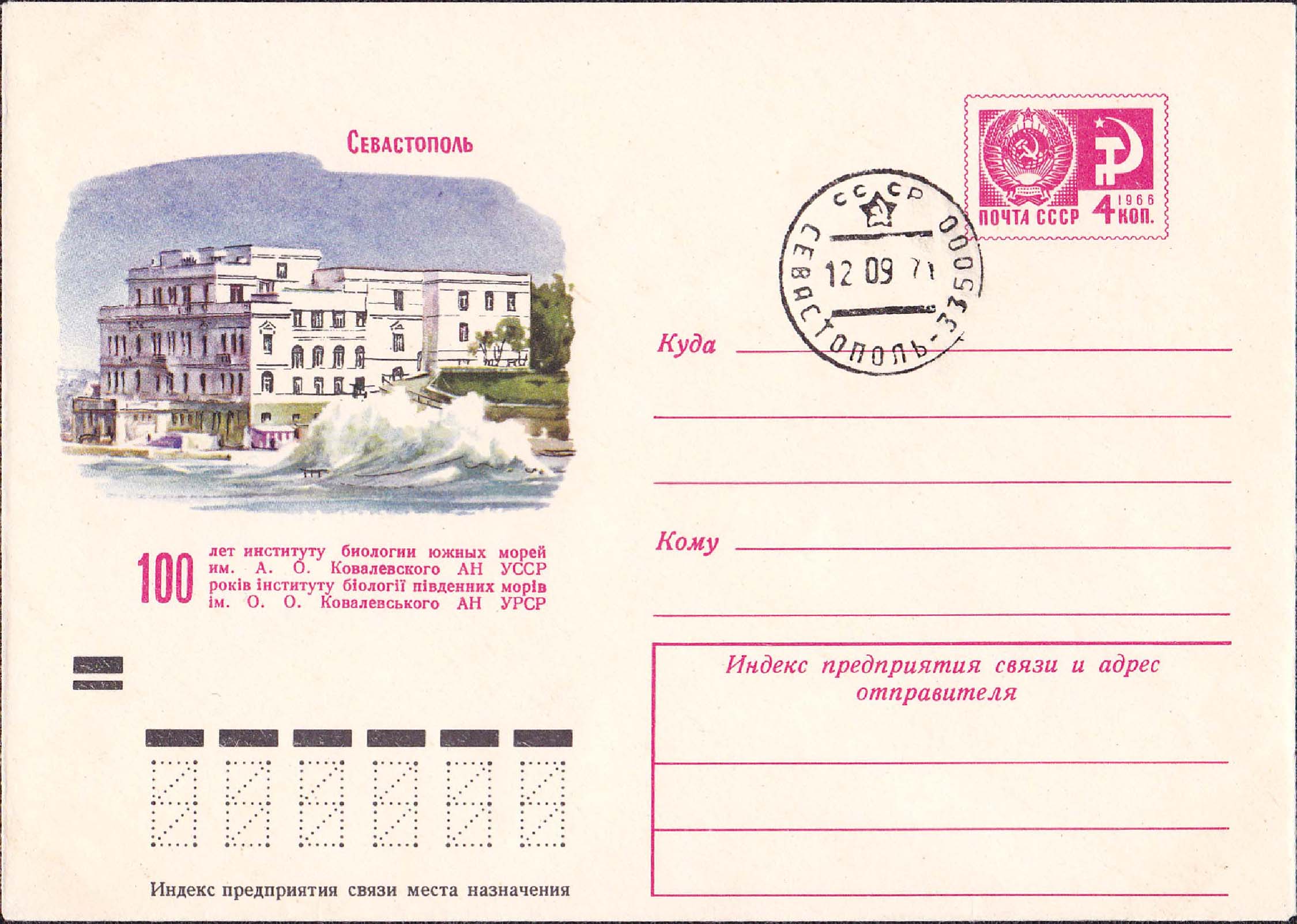 Конверт, посвящённый 100-летию Института биологии южных морей имени А. О. Ковалевского [ID: 1511] 100years_envelope.png Рис. 1. ИНБЮМ.jpg Заглавие Конверт, посвящённый 100-летию Института биологии южных морей имени А. О. Ковалевского Дата 1971 г. Коллекция Конверты, дипломы, сертификаты и т.д. Метки 100-летие ИнБЮМ, почтовый конверт ← Предыдущий документ Следующий документ →